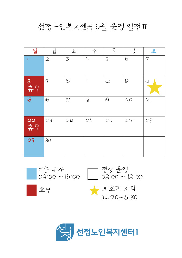 - 8일, 22일(일요일) : 센터 휴무