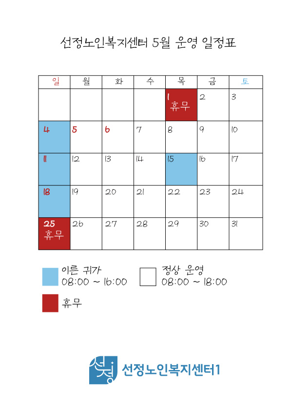- 1일(근로자의날), 25일(일요일) : 센터 휴무
