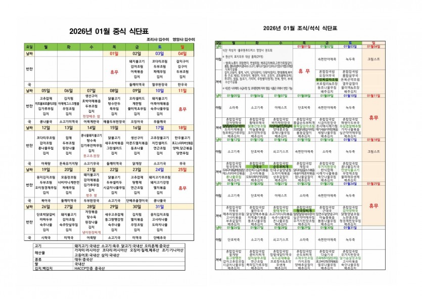 2026년 1월 부터는 장기요양보험 공단 평가에 따라 1일 4찬 제공 됩니다.