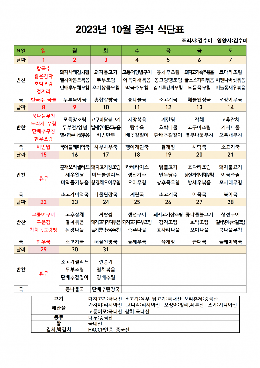 10월 소식지 및 식단표 페이지 정보 작성자 최고관리자 댓글 0건 조회 1,882회 작성일 23-10-01 16:47 본문 10월 소식지 및 식단표 입니다. 목록 이전글10월 주야간보호 프로그램 일정표 23.10.01 다음글2023년 10월 휴무일 안내 23.10.01